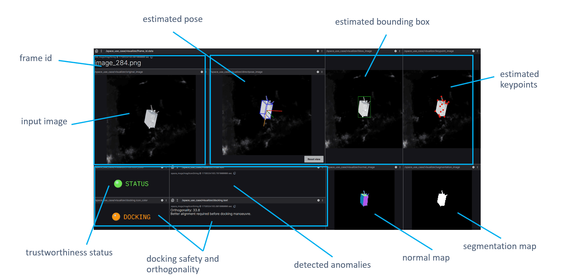 In a live demo, we simulated a satellite approaching sequence under anomalous variable conditions: sensor noise, delayed frames, and deliberate model perturbations.